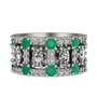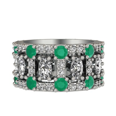 Beyaz zirkon, kök zümrüt ve pırlanta 14 ayar beyaz altın yüzük (0.66 karat)