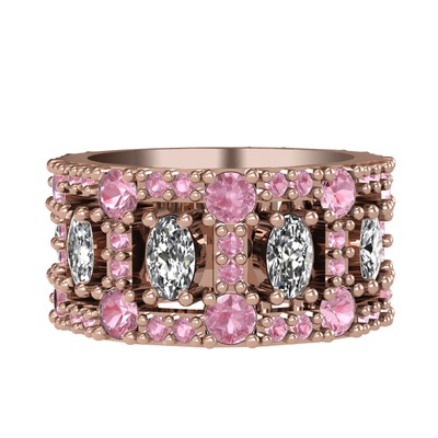 Beyaz zirkon ve pembe kuvars 18 ayar rose altın yüzük