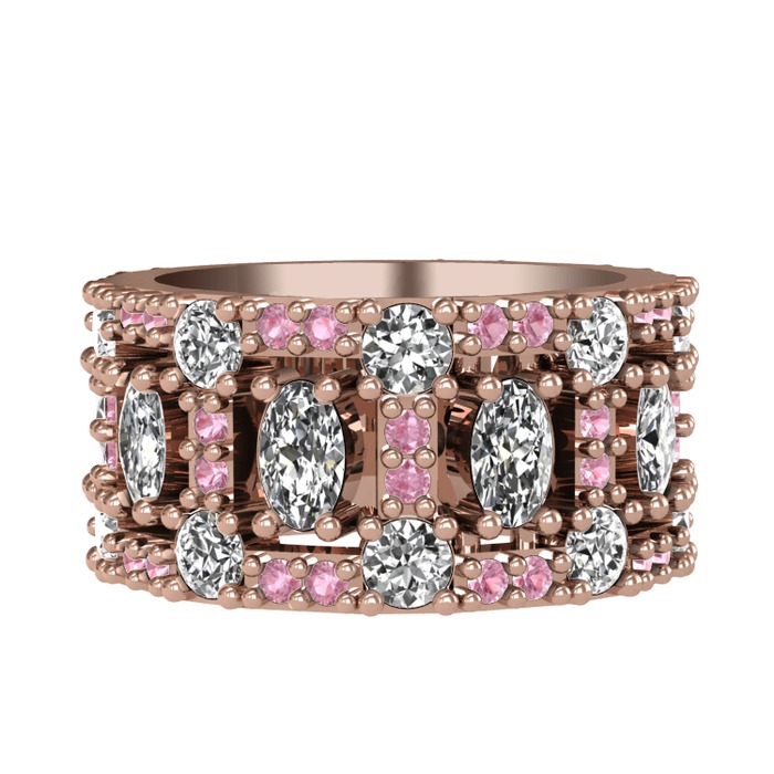 Beyaz zirkon, pırlanta ve pembe kuvars 925 ayar rose altın kaplama gümüş yüzük (1.76 karat)