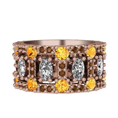 Beyaz zirkon, sitrin ve dumanlı kuvars 14 ayar rose altın yüzük