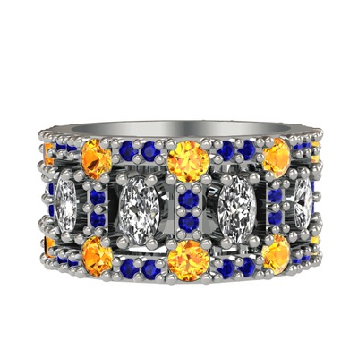 Beyaz zirkon, sitrin ve lab safir 18 ayar beyaz altın yüzük
