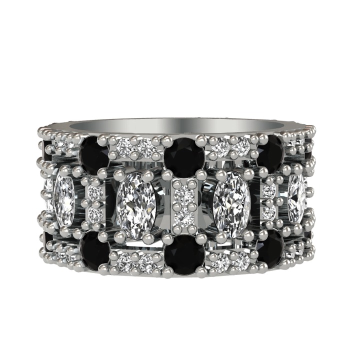 Beyaz zirkon, siyah zirkon ve pırlanta 925 ayar gümüş yüzük (0.66 karat)