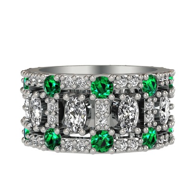 Beyaz zirkon, yeşil kuvars ve swarovski 14 ayar beyaz altın yüzük