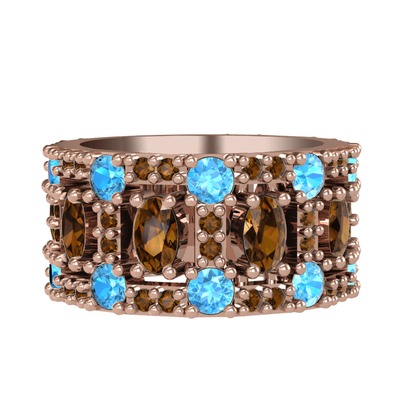 Dumanlı kuvars ve akuamarin 14 ayar rose altın yüzük