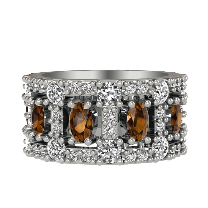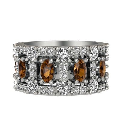 Dumanlı kuvars, beyaz zirkon ve swarovski 14 ayar beyaz altın yüzük