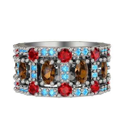 Dumanlı kuvars, garnet ve akuamarin 925 ayar gümüş yüzük