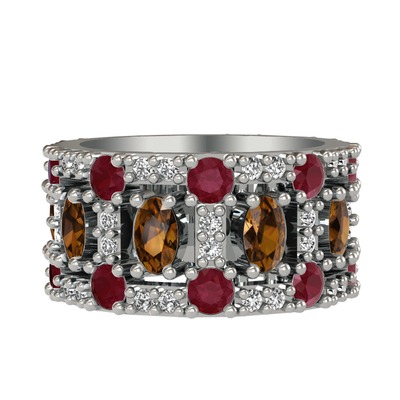 Dumanlı kuvars, kök yakut ve swarovski 18 ayar beyaz altın yüzük
