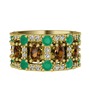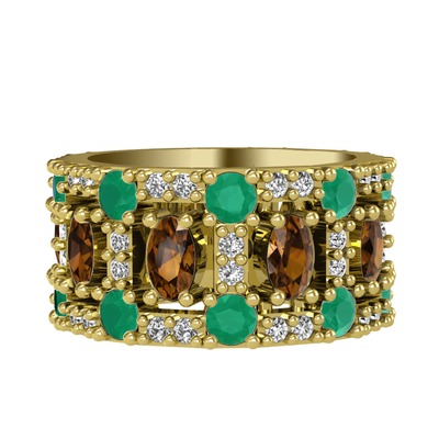 Dumanlı kuvars, kök zümrüt ve swarovski 18 ayar altın yüzük