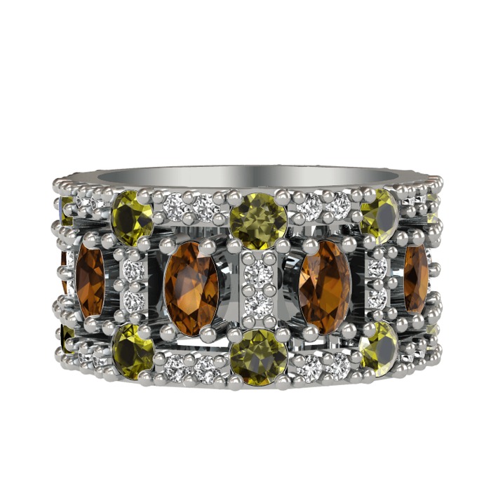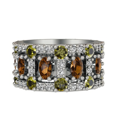 Dumanlı kuvars, peridot ve swarovski 14 ayar beyaz altın yüzük
