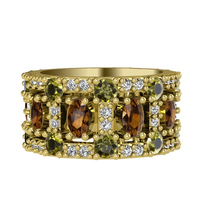 Dumanlı kuvars, peridot ve swarovski 8 ayar altın yüzük