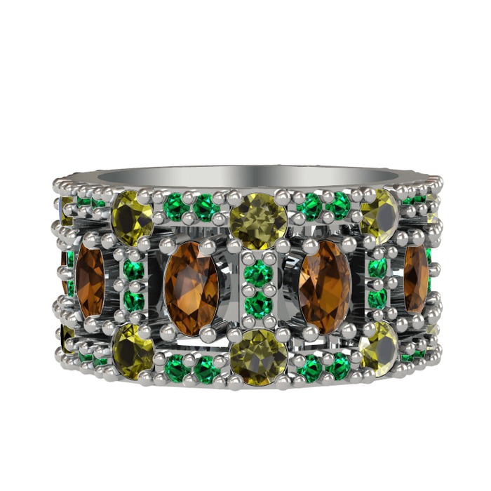 Dumanlı kuvars, peridot ve yeşil kuvars 14 ayar beyaz altın yüzük