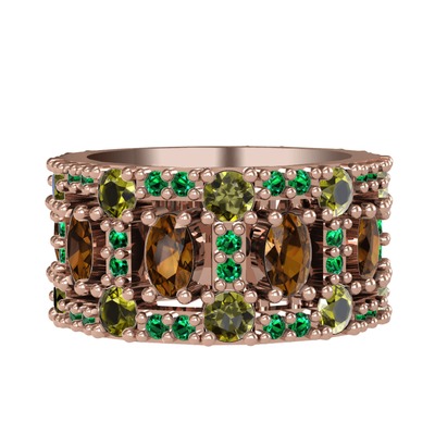 Dumanlı kuvars, peridot ve yeşil kuvars 925 ayar rose altın kaplama gümüş yüzük