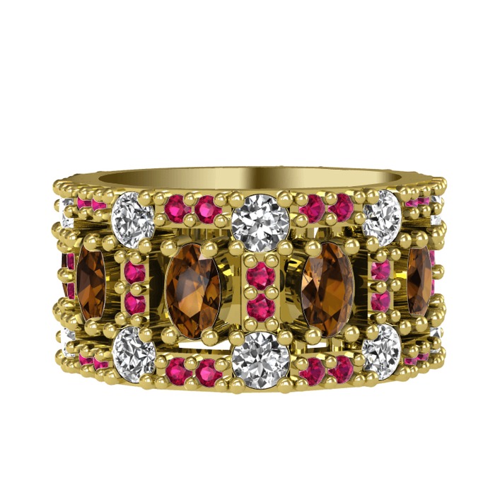 Dumanlı kuvars, pırlanta ve rodolit garnet 18 ayar altın yüzük (1.76 karat)