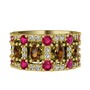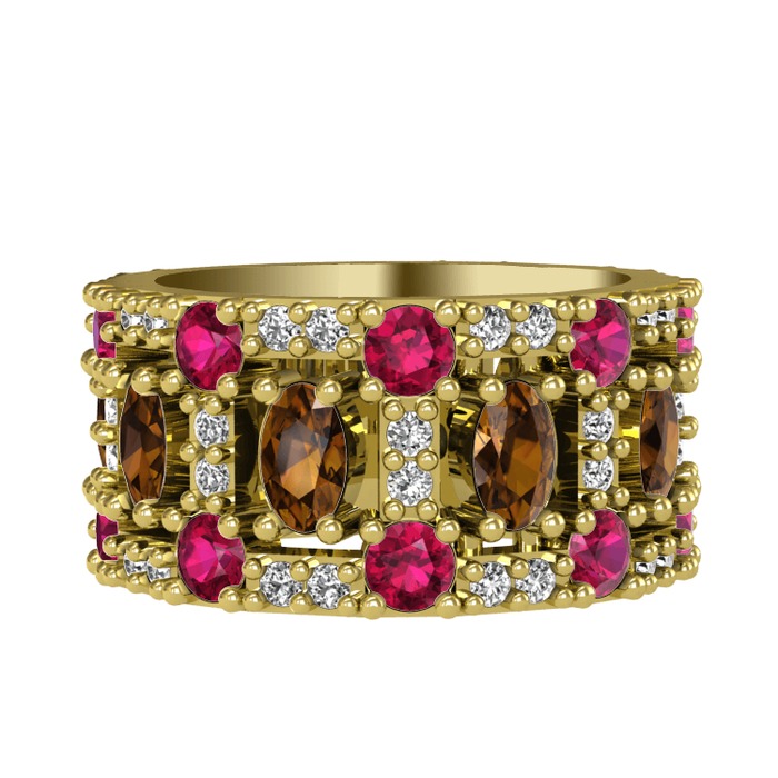 Dumanlı kuvars, rodolit garnet ve pırlanta 18 ayar altın yüzük (0.66 karat)