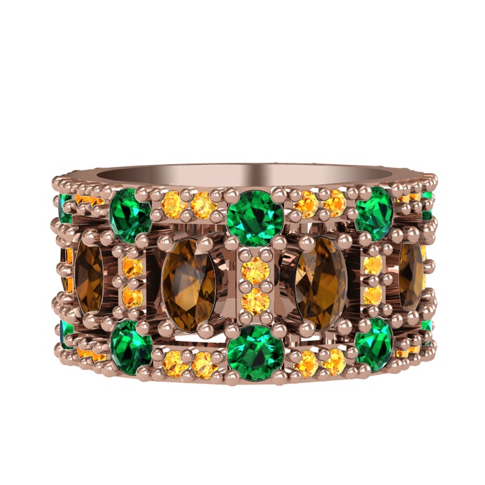 Dumanlı kuvars, yeşil kuvars ve sitrin 18 ayar rose altın yüzük