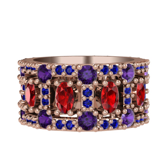 Garnet, ametist ve lab safir 18 ayar rose altın yüzük