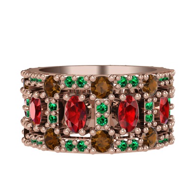 Garnet, dumanlı kuvars ve yeşil kuvars 18 ayar rose altın yüzük