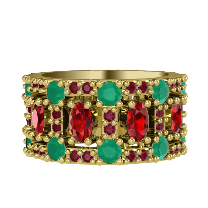 Garnet, kök zümrüt ve kök yakut 14 ayar altın yüzük