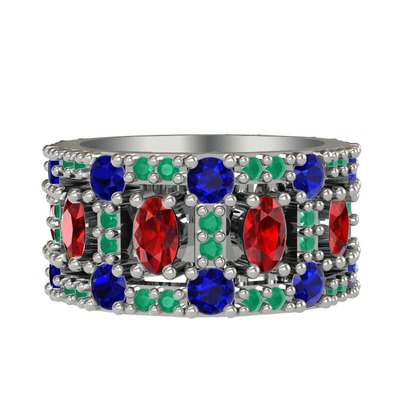 Garnet, lab safir ve kök zümrüt 8 ayar beyaz altın yüzük