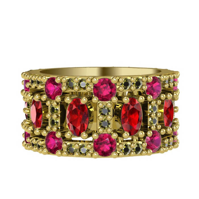 Garnet, rodolit garnet ve peridot 8 ayar altın yüzük