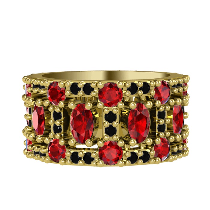 Garnet ve siyah zirkon 14 ayar altın yüzük