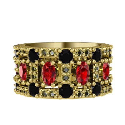 Garnet, siyah zirkon ve peridot 925 ayar altın kaplama gümüş yüzük