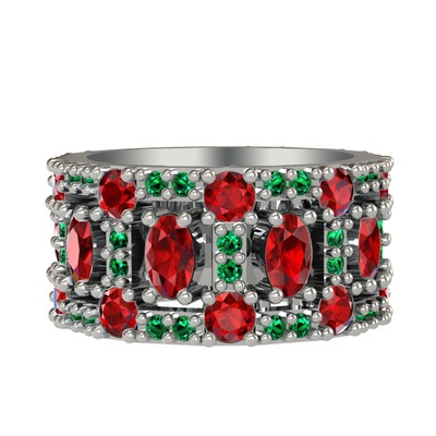 Garnet ve yeşil kuvars 18 ayar beyaz altın yüzük