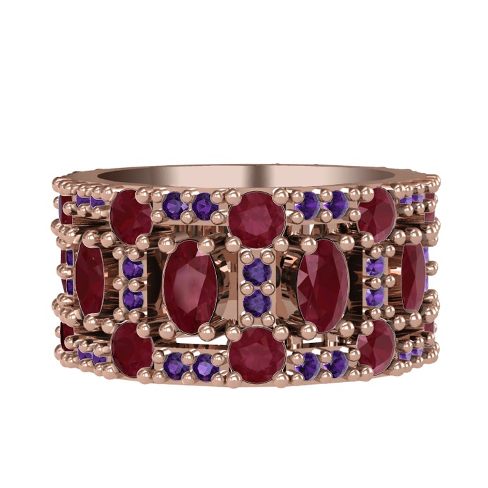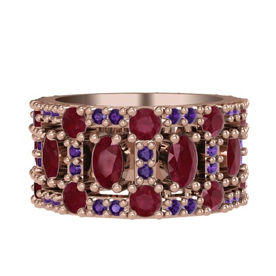 Kök yakut ve ametist 925 ayar rose altın kaplama gümüş yüzük