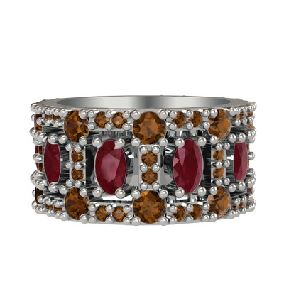 Kök yakut ve dumanlı kuvars 8 ayar beyaz altın yüzük