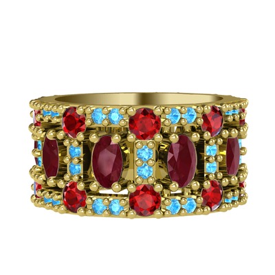 Kök yakut, garnet ve akuamarin 8 ayar altın yüzük