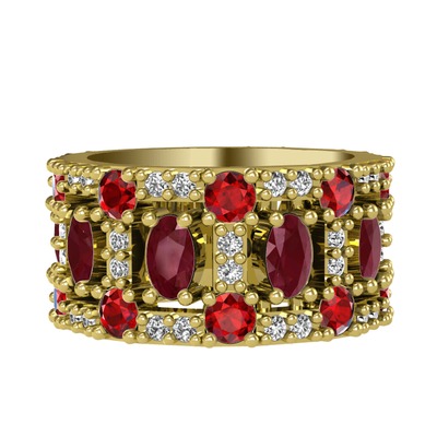 Kök yakut, garnet ve swarovski 18 ayar altın yüzük
