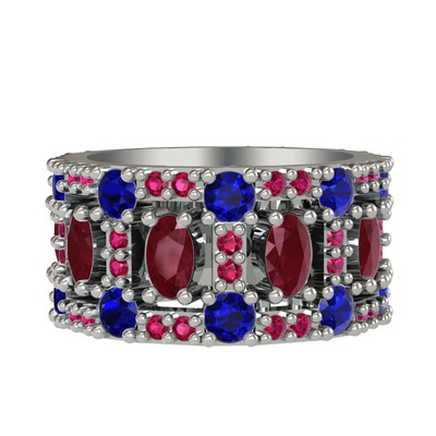 Kök yakut, lab safir ve rodolit garnet 14 ayar beyaz altın yüzük