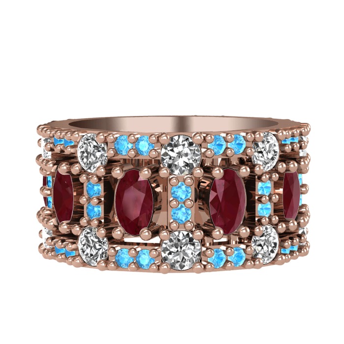 Kök yakut, pırlanta ve akuamarin 14 ayar rose altın yüzük (1.76 karat)
