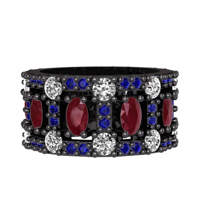 Kök yakut, pırlanta ve lab safir 925 ayar siyah rodyum kaplama gümüş yüzük (1.76 karat)