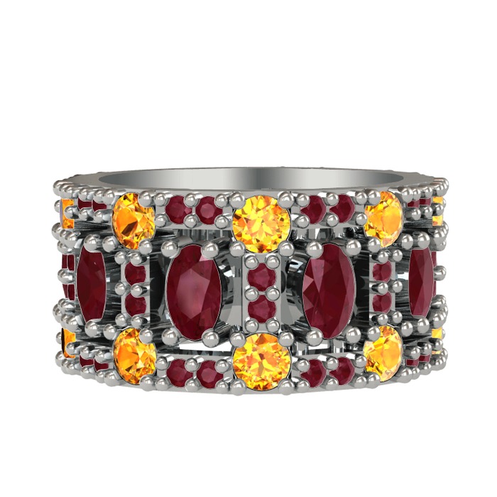 Kök yakut ve sitrin 18 ayar beyaz altın yüzük