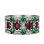 Kök yakut, yeşil kuvars ve beyaz zirkon 18 ayar beyaz altın yüzük