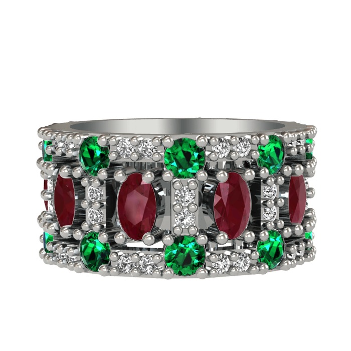Kök yakut, yeşil kuvars ve swarovski 18 ayar beyaz altın yüzük