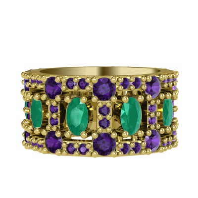 Kök zümrüt ve ametist 18 ayar altın yüzük