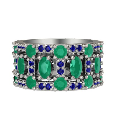 Kök zümrüt ve lab safir 14 ayar beyaz altın yüzük