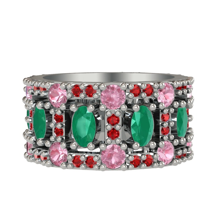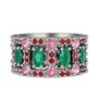 Kök zümrüt, pembe kuvars ve garnet 925 ayar gümüş yüzük