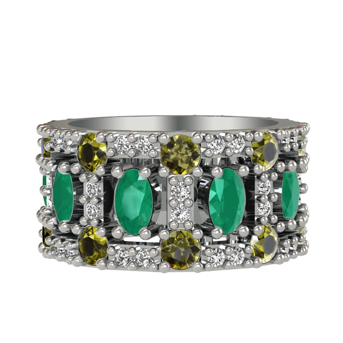 Kök zümrüt, peridot ve swarovski 14 ayar beyaz altın yüzük