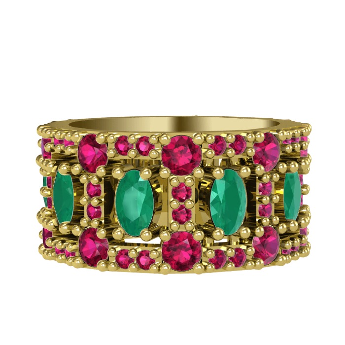 Kök zümrüt ve rodolit garnet 8 ayar altın yüzük