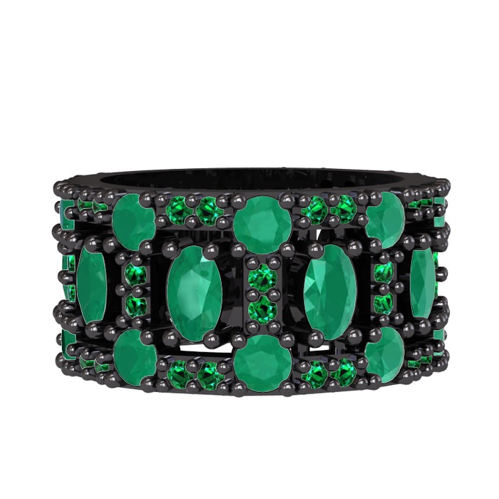 Kök zümrüt ve yeşil kuvars 925 ayar siyah rodyum kaplama gümüş yüzük
