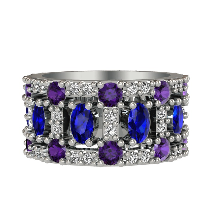 Lab safir, ametist ve swarovski 14 ayar beyaz altın yüzük