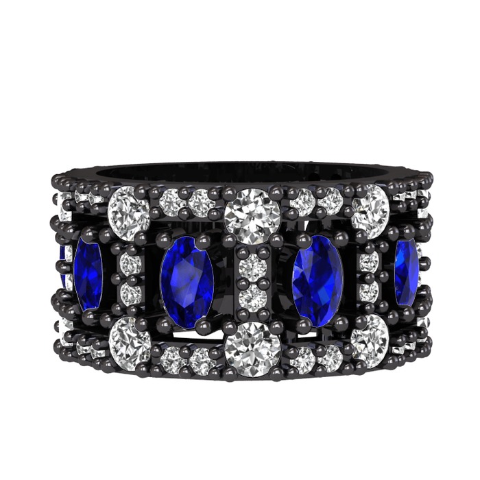 Lab safir, beyaz zirkon ve pırlanta 925 ayar siyah rodyum kaplama gümüş yüzük (0.66 karat)