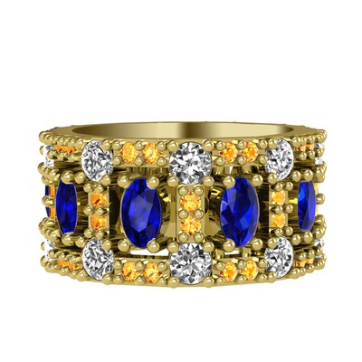 Lab safir, beyaz zirkon ve sitrin 18 ayar altın yüzük