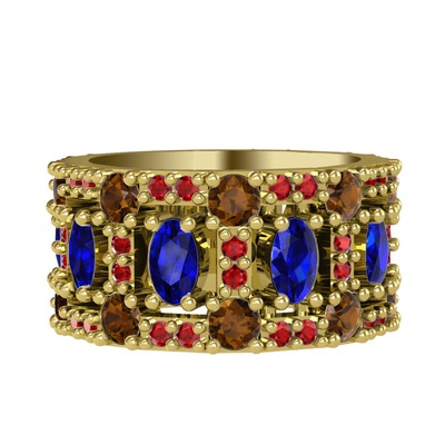 Lab safir, dumanlı kuvars ve garnet 14 ayar altın yüzük