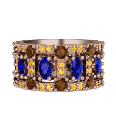Lab safir, dumanlı kuvars ve sitrin 14 ayar rose altın yüzük