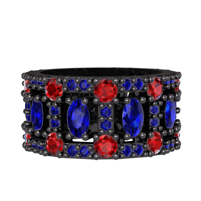 Lab safir ve garnet 925 ayar siyah rodyum kaplama gümüş yüzük