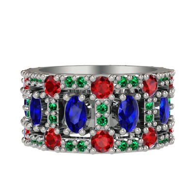 Lab safir, garnet ve yeşil kuvars 18 ayar beyaz altın yüzük
